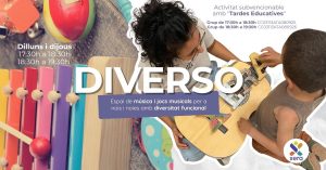 Espai musical inclusiu que promou el desenvolupament comunicatiu, sensorial i expressiu dels participants a través del joc i la música. A partir de 3 anys. Dilluns i dijous de 17:30 h a 18:30 h i de 18:30 h a 19:30 h Seu Olzinelles, 30