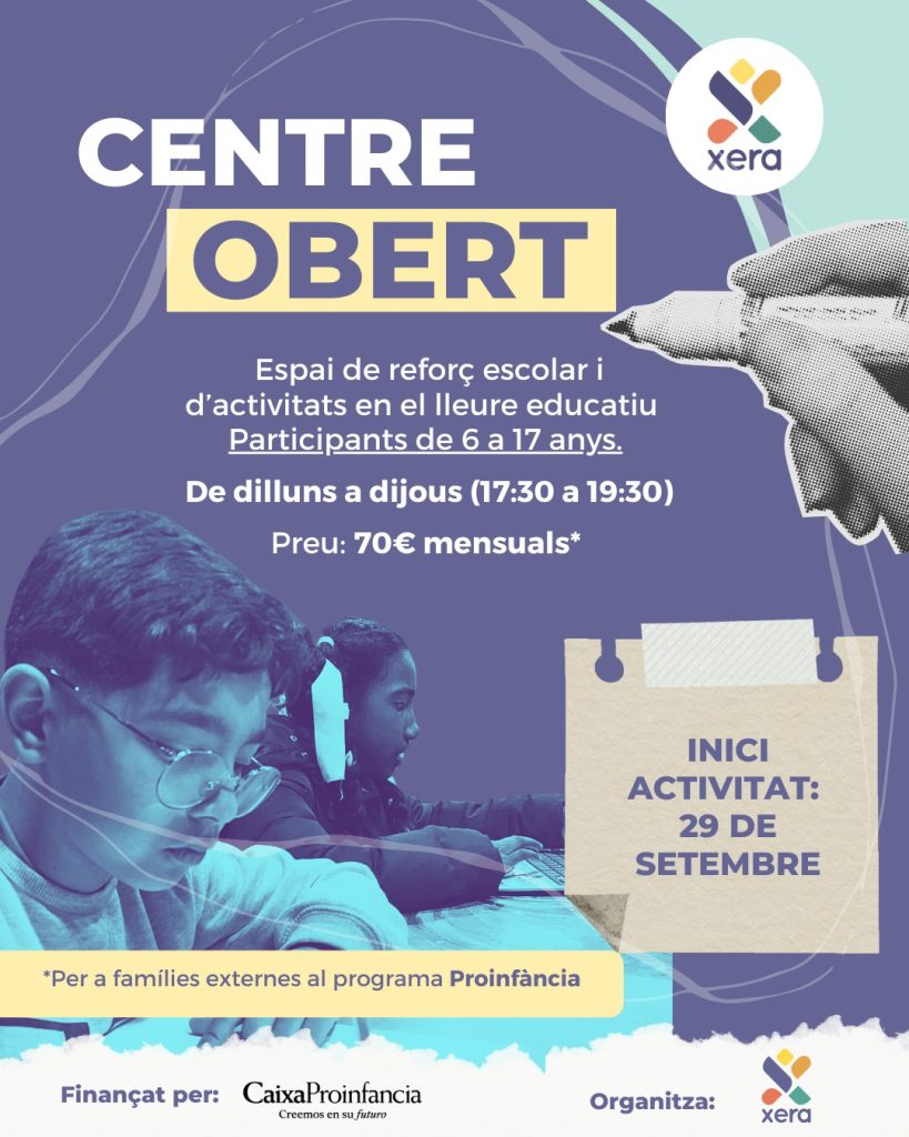 – Centre Obert: activitats de tarda, jocs i tallers per créixer, conviure i aprendre en un entorn segur i educatiu.