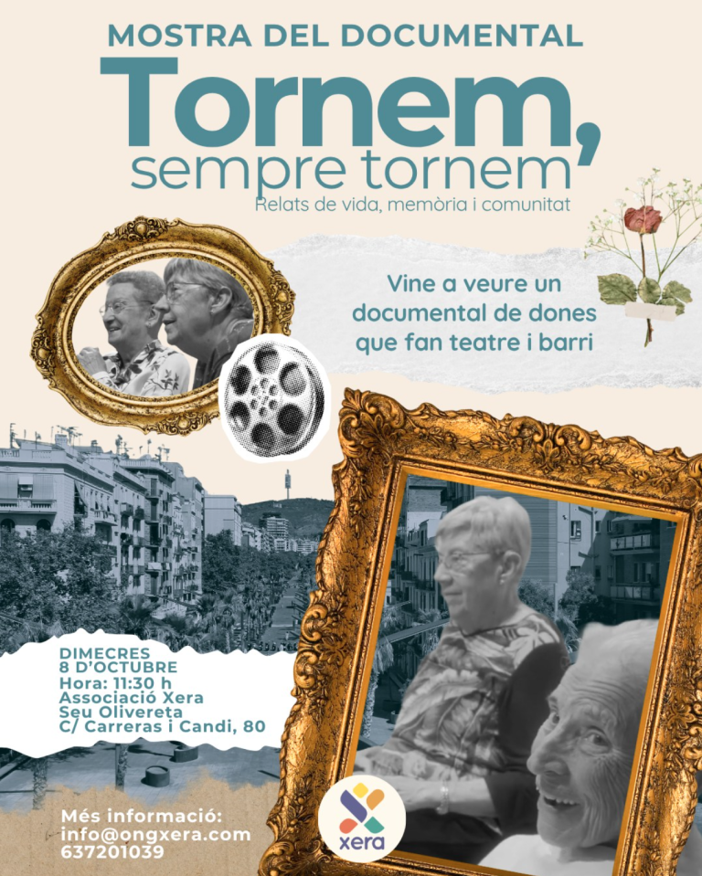 Aquest 8 d’octubre, a la seu de Xera – Olivereta, vam celebrar el Dia Internacional de la Gent Gran amb la projecció del documental “Tornem”. Una peça audiovisual que mostra, amb humor i tendresa, el taller de teatre comunitari que es fa cada dilluns amb persones grans del barri de Badal.